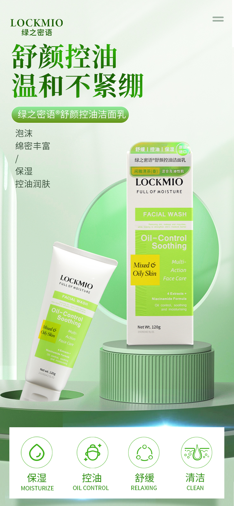 LOCKMIO绿之密语完税进口清洁保湿舒缓卸妆舒颜控油洁面乳120g